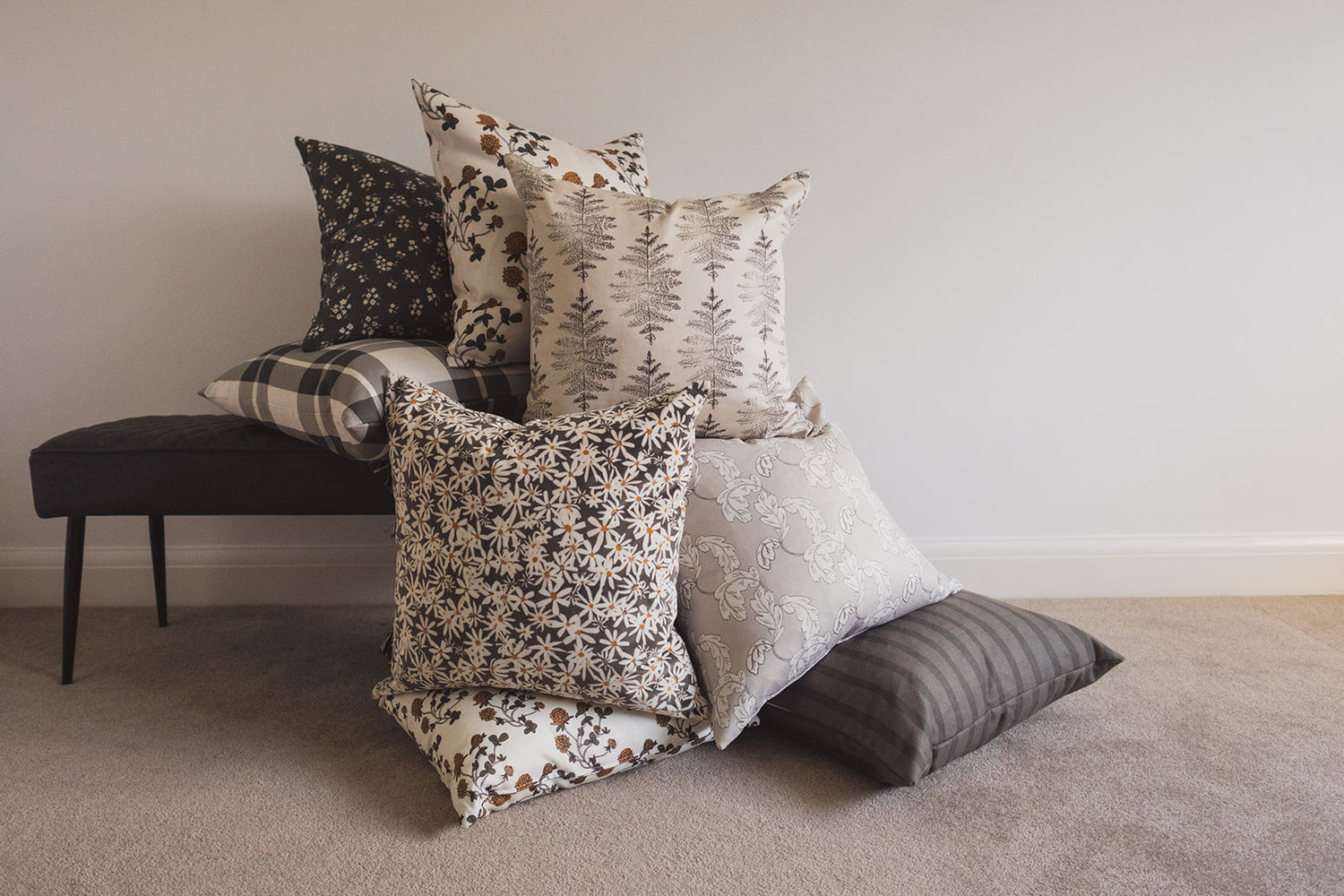 Wild Petal, Soft Bloom, or Gathered Stems—each cushion carries my original botanical artwork into her living space. She notices it each time she sits down. A small, constant reminder that her home reflects who she is.
