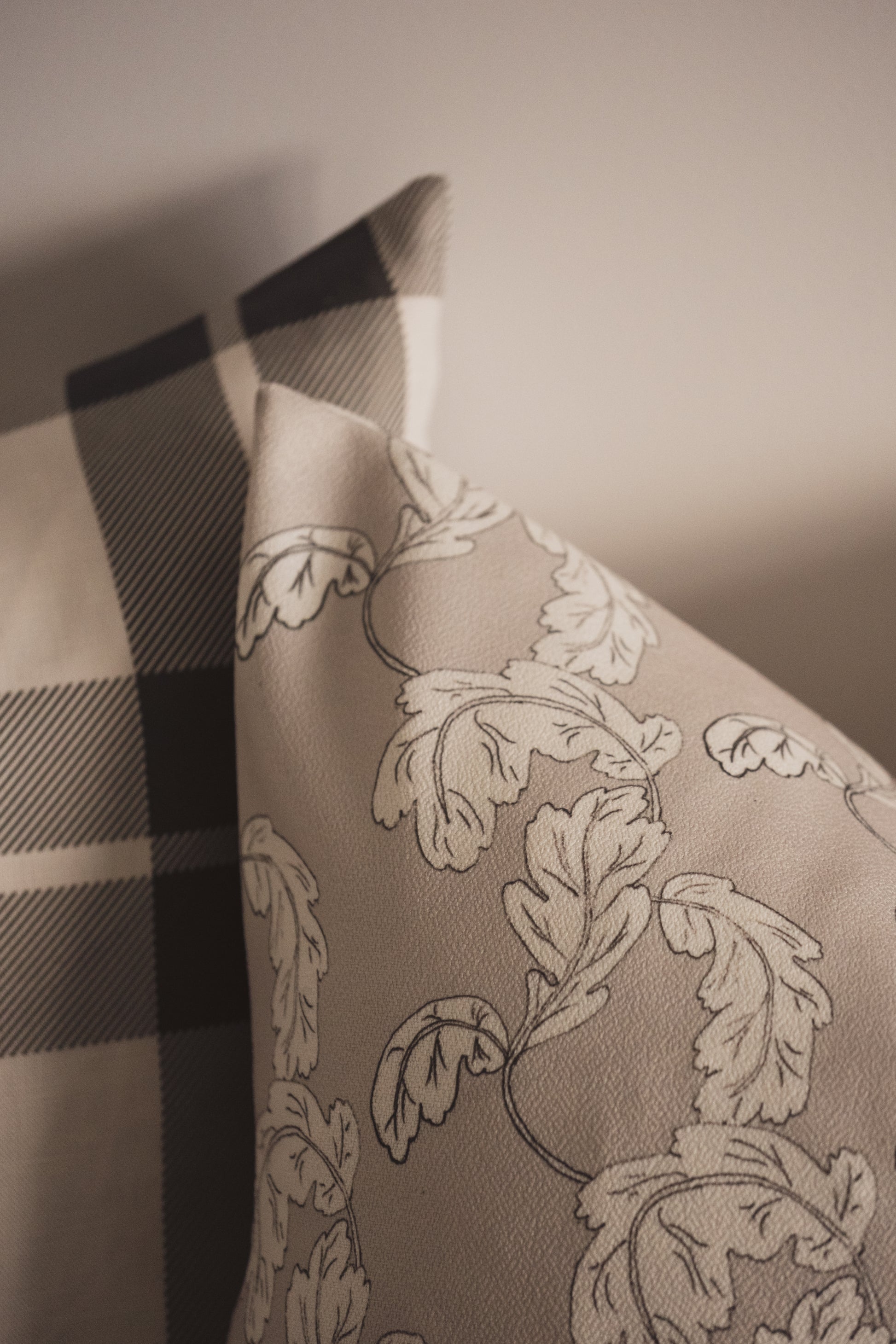 This design echoes the beauty of historic forms — the kind of curves you find in old stonework and textile archives. Hand-illustrated and translated into sustainable fabric, it connects past and present in something to live with today.