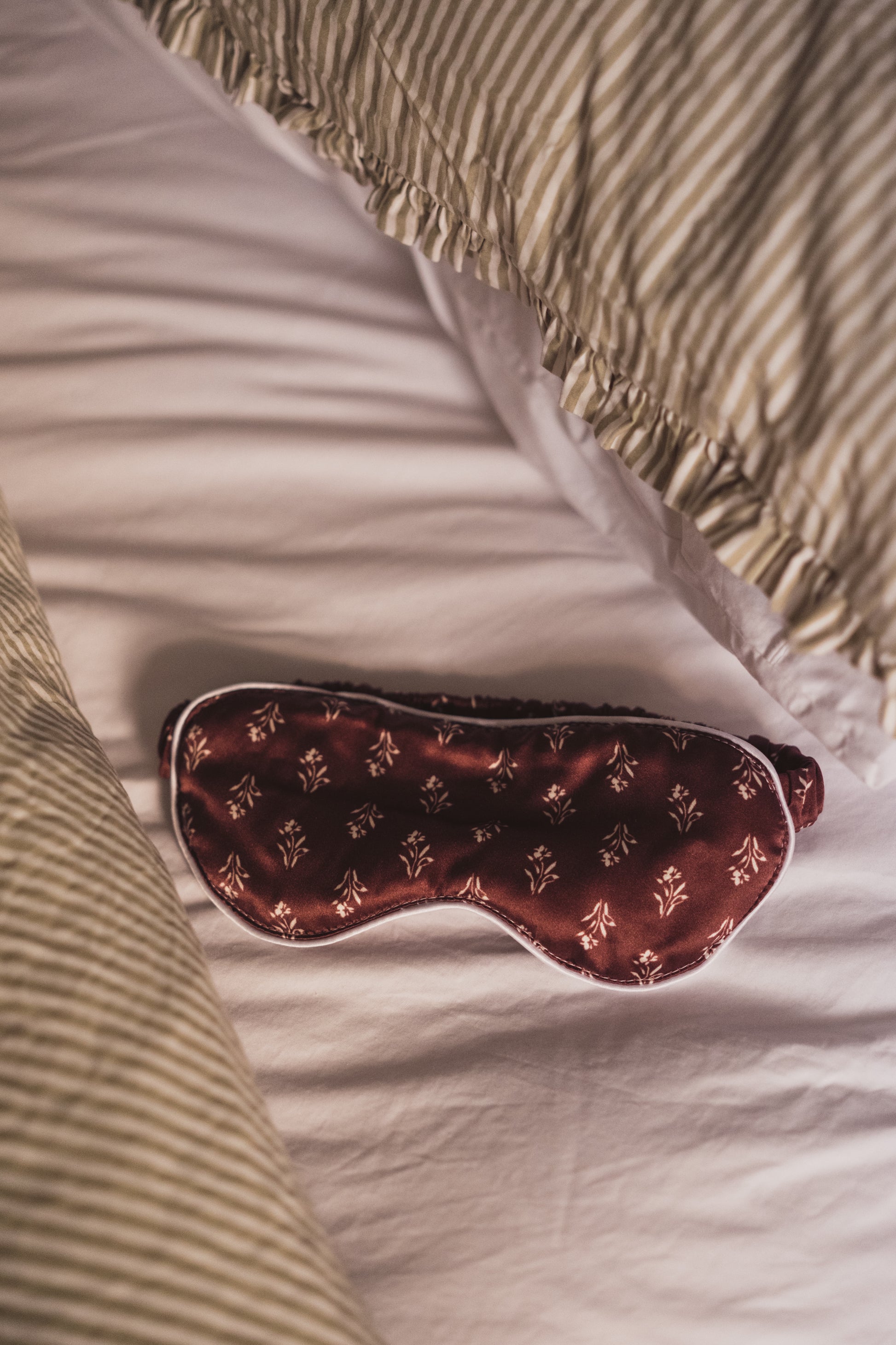 The Soft Bloom Sleep Mask is 100% pure silk satin: soft, weightless, and gentle against your skin. Quilted padding blocks out light while the elasticated strap keeps everything comfortably in place.